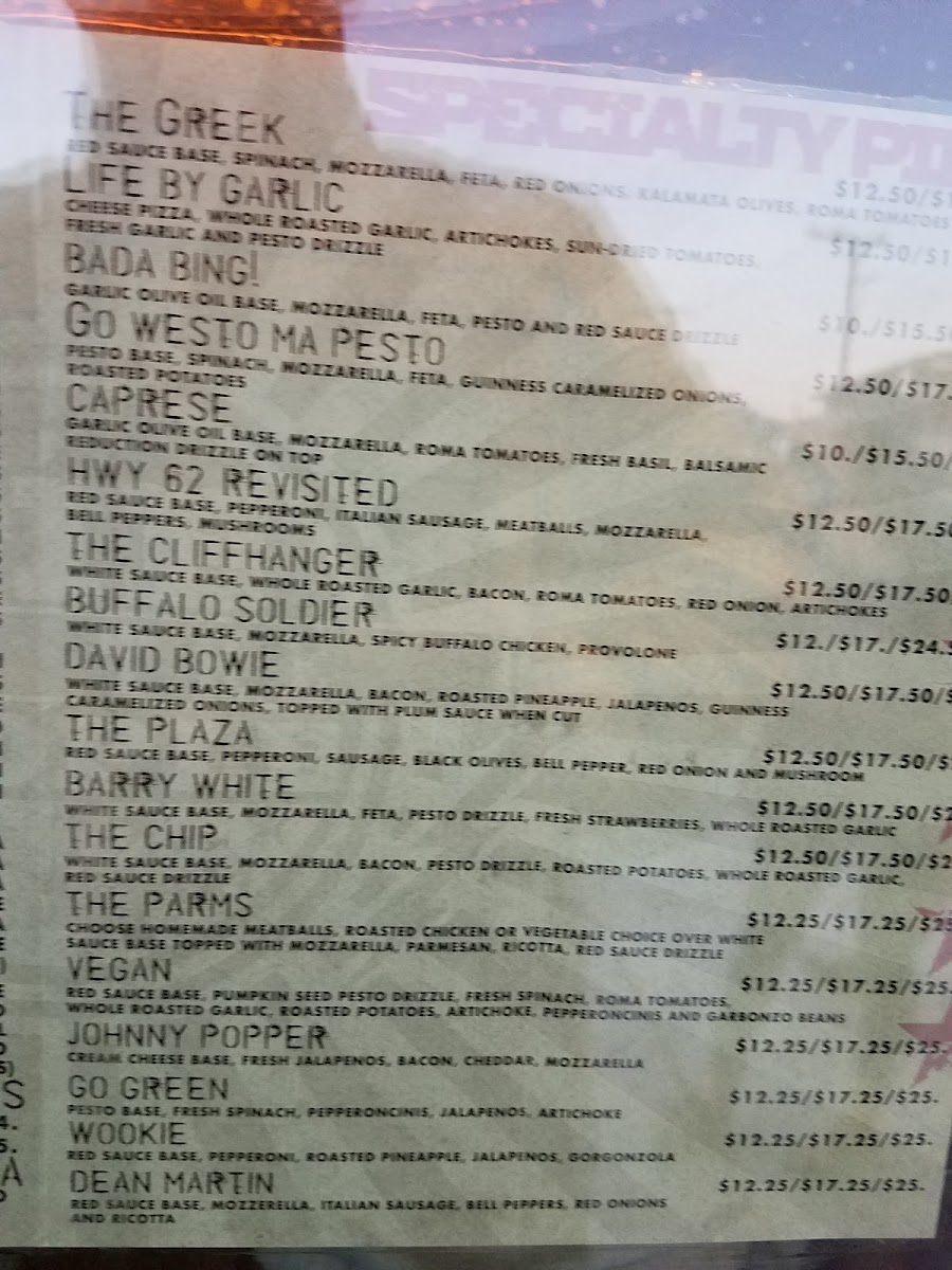 The menu is a creative fusion of flavors, featuring standout options like the David Bowie and Jonny Popper pizzas, where savory meets sweet in a symphony of taste. Each pie is crafted with fresh, high-quality ingredients that elevate the classic pizza experience, making it perfect for families and solo diners alike.